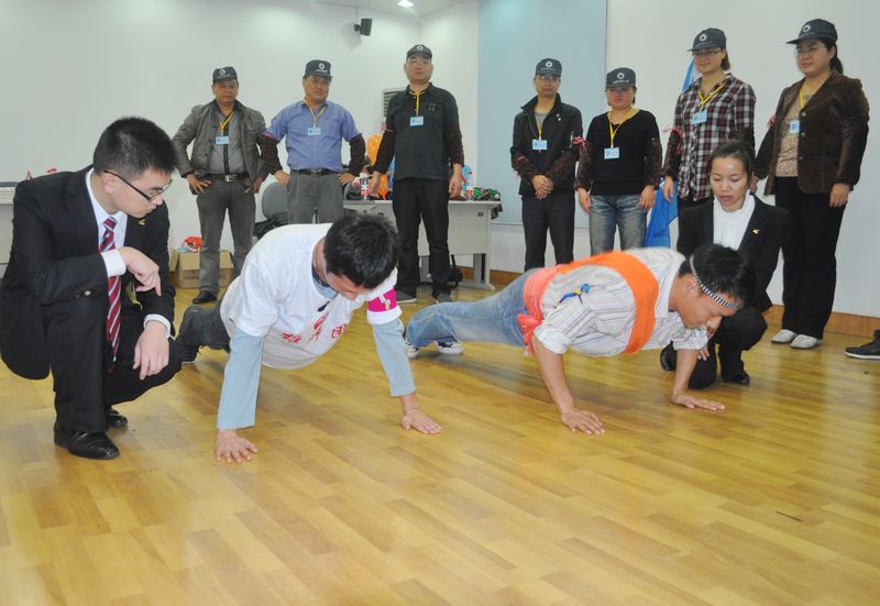 现场游戏“报数”中,看着因为自己的过失而承担责任的团长在40个、80、160个俯卧撑的重压之下苦苦支撑,累趴下之后又重新开始,直到虚脱晕厥,学员们内心无不充满愧疚,不少学员压抑不住自己的情绪开始哭泣或提出抗议。张老师低沉的声音坚定地响起在大家的耳畔:“现在请大家看着两位团长艰苦支撑的背影,他们是在为谁承担挫折、困难和失败的结果呢?这时候你看着他们强撑的背影,你想起了谁?在你工作和生活当中是不是也有人为你做着俯卧撑呢?你的同事、你的爱人、你的朋友、你的父母、你的员工、你的领导,是不是因为你的轻视、你的不努力,他们正为你承受着严重的后果!当别人为你付出的时候我们是那样的茫然,那样无所谓,今天我们只是让大家直观地看到了这样的场景……”所有学员流着眼泪争相与为企业发展和员工成长殚精竭虑、不辞劳苦的郑总和应总握手拥抱。