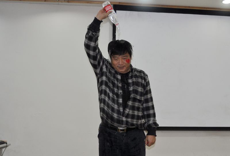 在最后一个比赛项目——热情洋溢、动感十足的“抓钱舞”表演之后,三支团队决出了胜负,获胜的冠军团捧得了奖杯、奖牌和奖品,失利的两个团长勇于承担了责任,按照之前的承诺分别在现场淋水五瓶和剃了光头。
