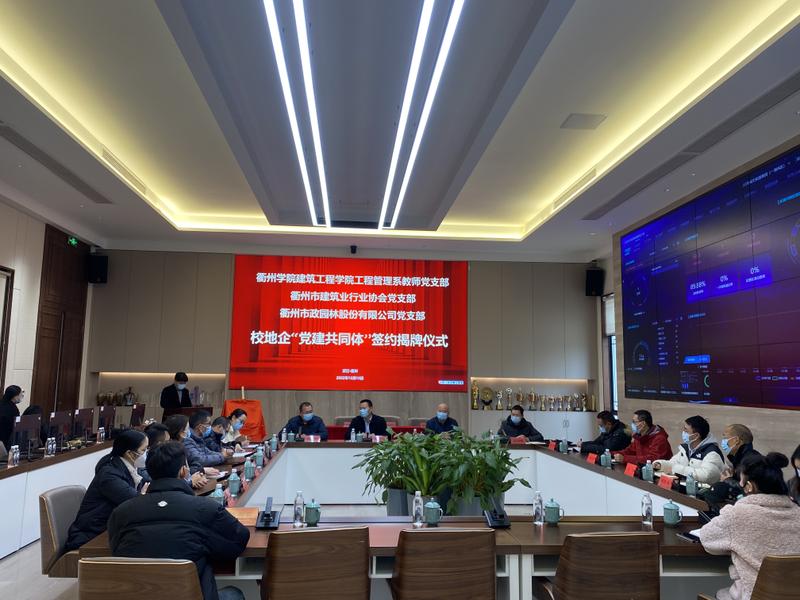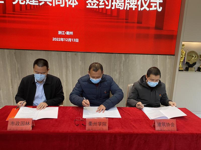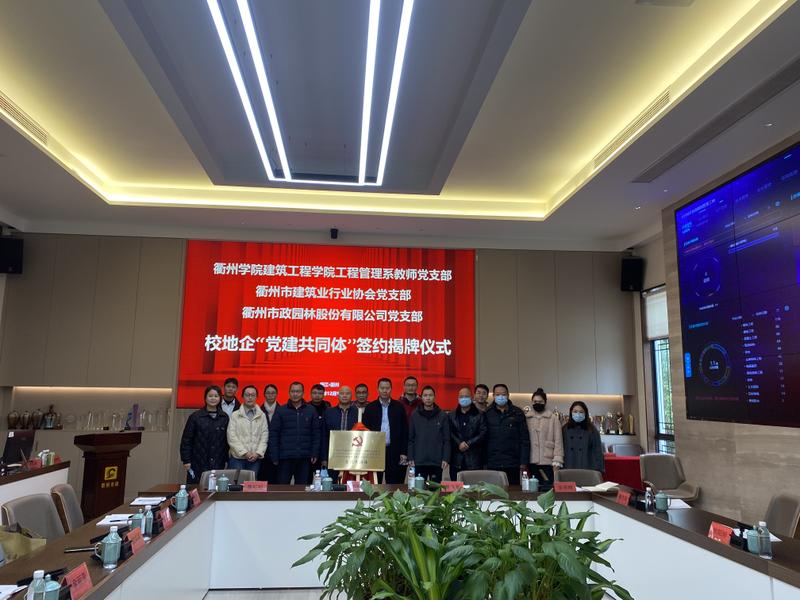 12月13日下午,中共衢州学院建筑工程学院工程管理系教师党支部,中共衢州市建筑业行业协会党支部,中共英国威廉希尔党支部三方联合举行了校地企“党建共同体” 签约揭牌仪式。