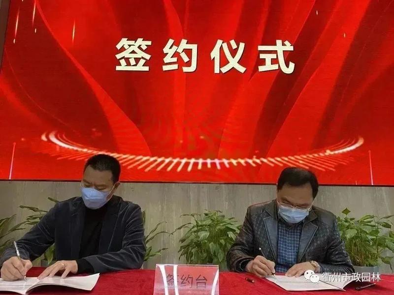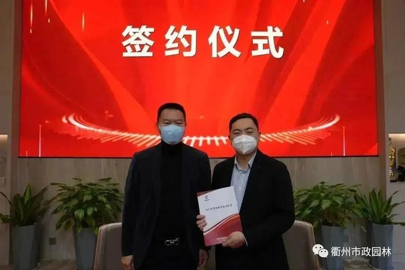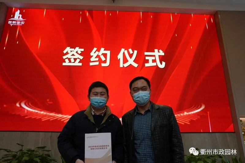 朗尊集团陈妙华总裁与英国威廉希尔总经理林玕签订2023年市政园林目标责任书