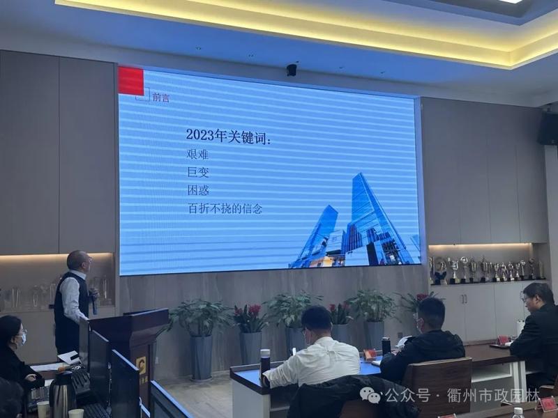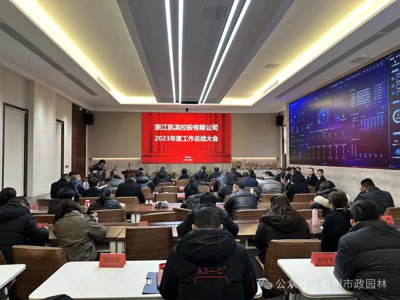 浙江凯淇控股有限公司于2024年1月26日-1月27日顺利召开集团2023年度工作总结会议,会议所有议程历时两天。凯淇控股旗下朗尊建设集团、市政园林公司、市政建设开发公司、园也园林公司、鸿添设计公司、森固文旅、和韵衢州、常山亿森、尺方间园艺、壹沃科技、忠博贸易等子公司主要负责人及凯淇控股各部门负责人、集团高管相继在会议上作年度工作总结。最后由凯淇控股郑荣忠董事长讲话。