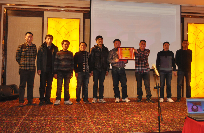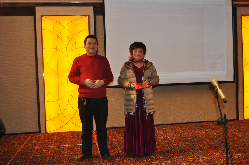 年会由总经理助理龚时辉主持,会议首先进行了2011年度公司优秀员工、优秀主管和年度特殊贡献的颁奖活动。由副总经理张松涛为获得年度优秀员工三等奖的周迎霞、刘刚、汪秋萍颁发了荣誉证书和奖金,由副总经理占元龙为获得年度优秀员工二等奖的薛佳美和张金海颁发了荣誉证书和奖金,由副总经理王中伟为获得年度优秀员工一等奖的黄彩霞颁发了荣誉证书和奖金,由总经理应明为获得年度优秀主管的郑林萍和张庆国颁发了荣誉证书和奖金。《提高不规则冰梅面层石材铺装观感质量》QC小组和吴晓农项目部荣获年度特殊贡献奖,由董事长郑荣忠为两项特殊贡献奖颁发荣誉证书,分别获得奖金5000元和15000元。