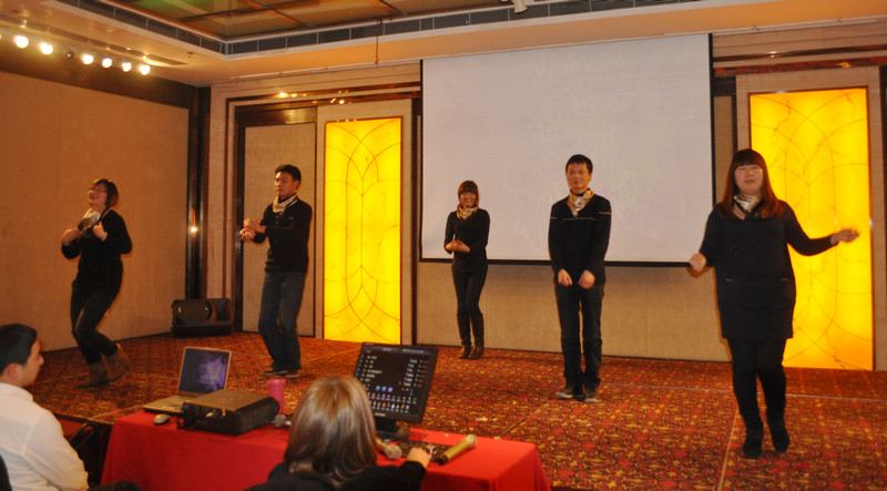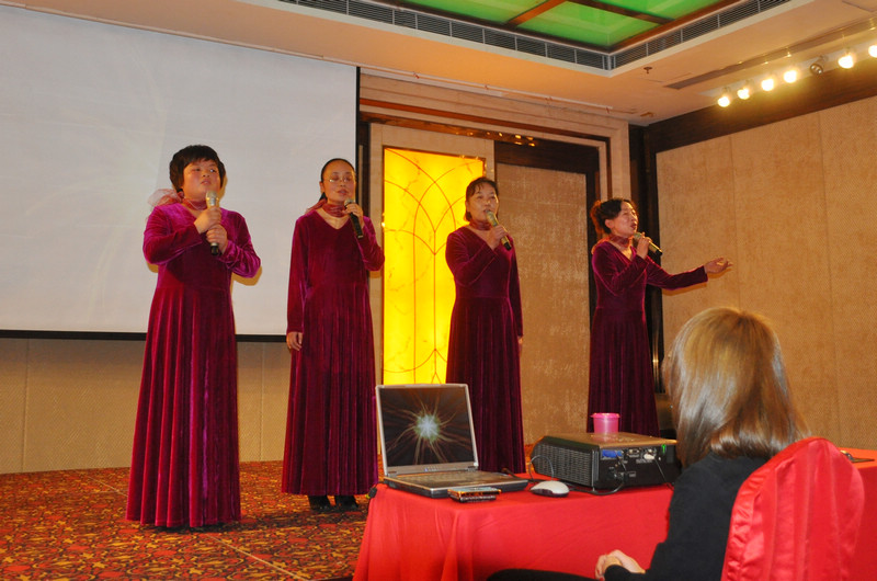 在热烈气氛的感染下,郑荣忠董事长、应明总经理分别为大家献上独唱《佛光》和《北国之春》,在座的佳宾和员工也争先恐后地登台献唱,你方唱罢我登场,现场一片其乐融融。