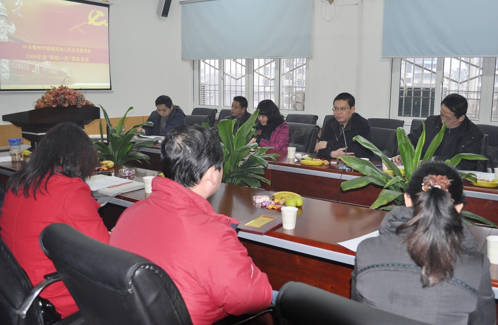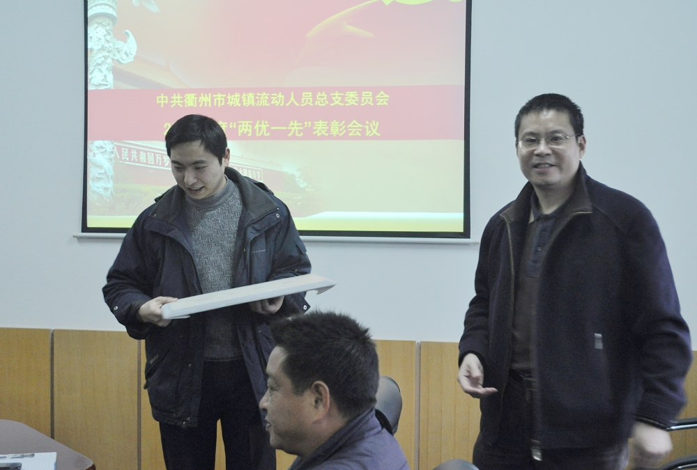 1月27日下午15点30分,中共衢州市城镇流动人员总支委员会2009年度“两优一先”表彰会议在公司会议室举行,市人才交流中心党支部书记兼主任杭锋、市城镇流动人员总支委员会书记郑显荣及各兄弟支部的书记、优秀党务工作者和优秀党员出席会议。公司董事长郑荣忠在会上做欢迎致词,总支书记郑显荣总结了2009年度总支工作情况及取得成绩,宣读了2009年度先进支部、优秀党务工作者和优秀党员获奖名单,公司党支部继2008年之后再一次荣获先进支部奖项。会议上由杭锋主任向获奖支部和个人颁发奖牌和证书。