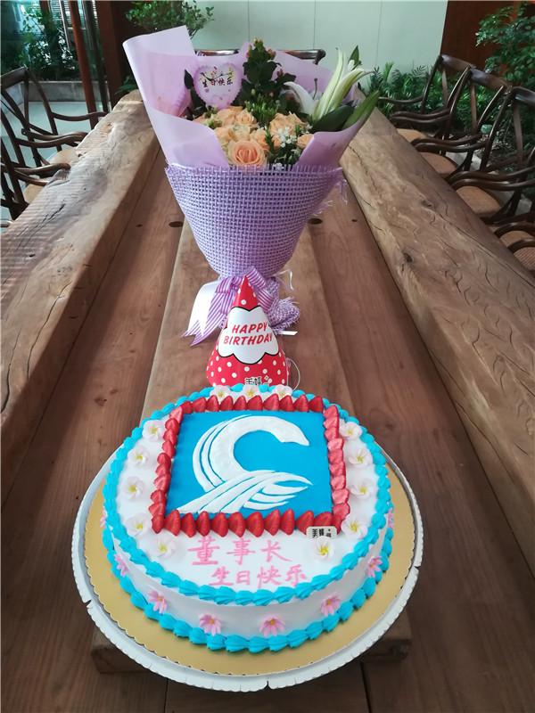 大家订制了一个有公司logo的生日蛋糕,一起唱生日歌,送祝福,用特有的方式为董事长送上一份别样的生日礼物。