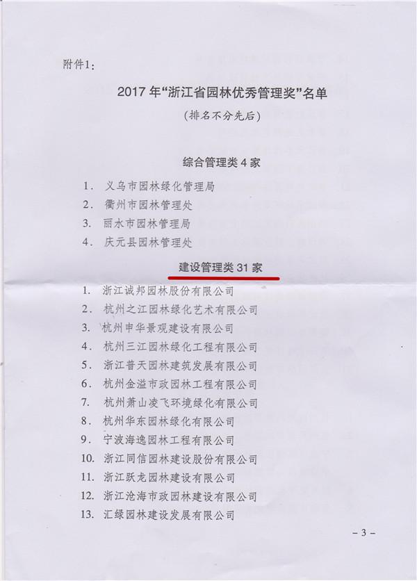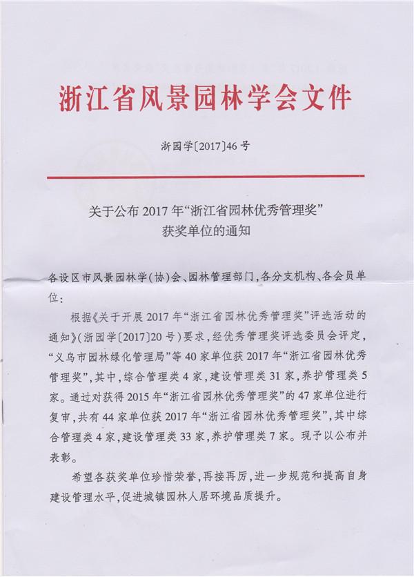 热烈祝贺我司荣获2017年“浙江省园林优秀管理奖”。
