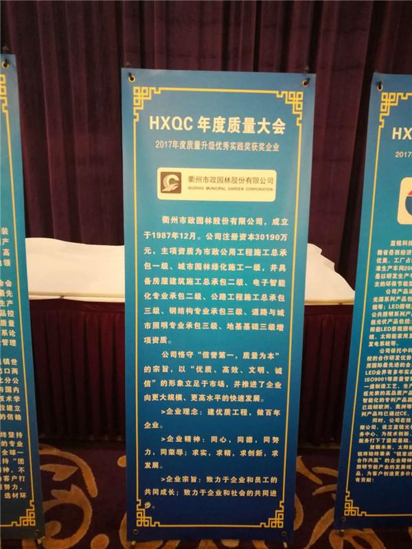 俗话说:“百年大计,质量第一”。质量是一个企业生存,可持续发展,永远立于不败之地的根本。我司多年来一直坚持ISO体系认证,包括质量管理体系、环境管理体系以及职业健康安全管理体系。经过多年的改进和积累,我司荣获HXQC2017年年度质量升级优秀实践奖。