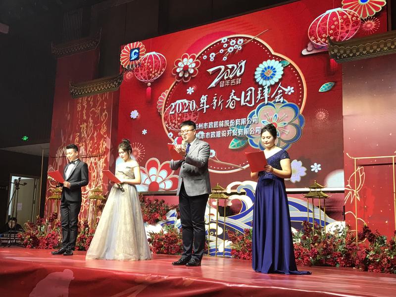 团拜会在气势磅礴的开场表演《龙腾狮跃》中拉开序幕。董事长郑荣忠总结了2019年公司所取得的成绩和2020年将奋斗的方向,并向始终辛勤奋战在各条战线的市政人,向始终关心支持市政发展的朋友们,致以诚挚的问候和衷心的感谢。新的一年,他希望所有市政人能够不忘初心,同心同力,为公司的稳步发展不懈奋斗。
