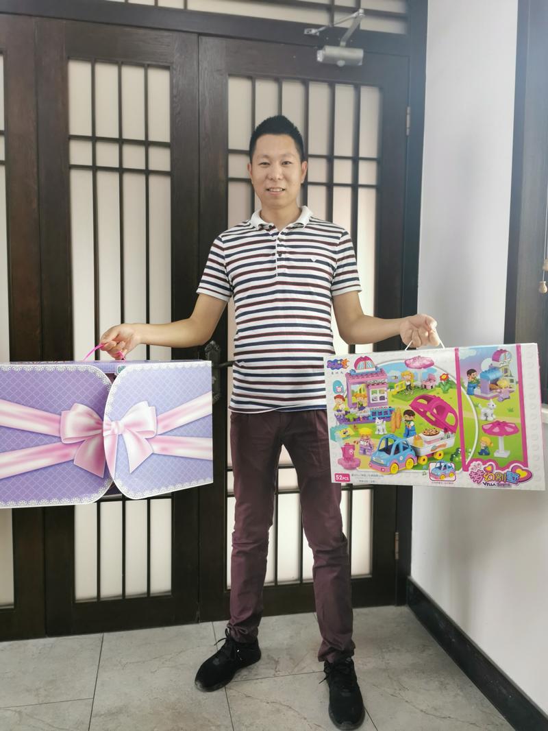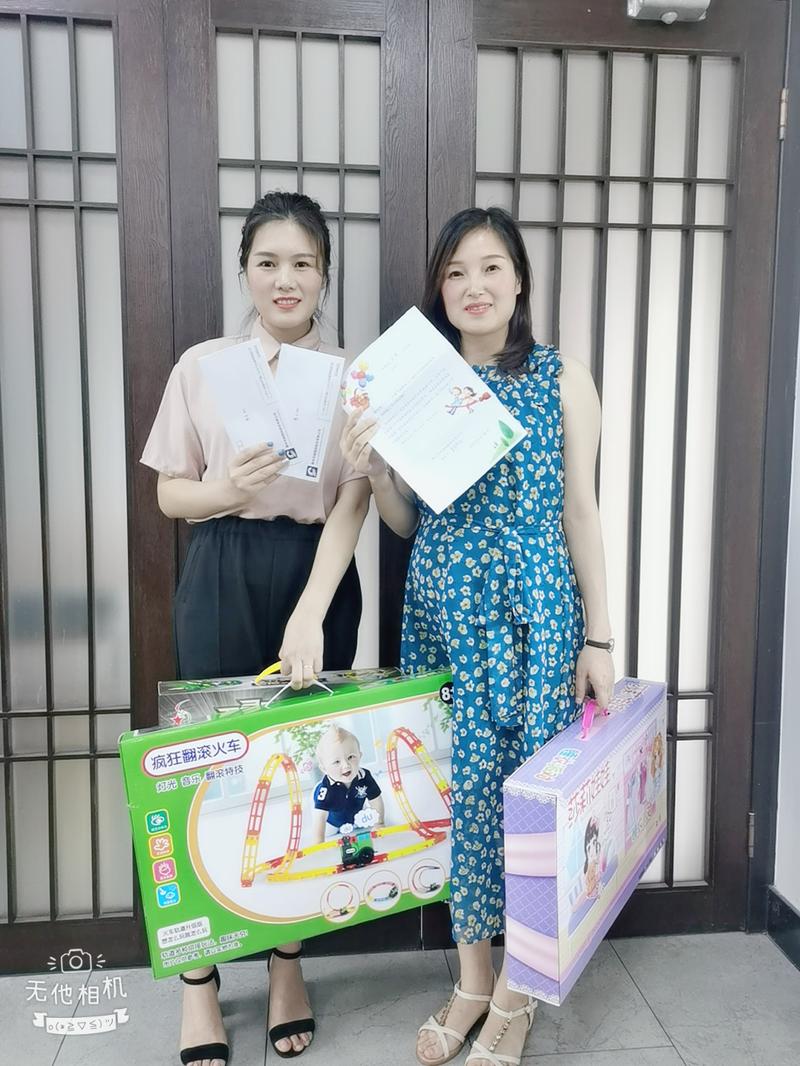 按照年龄大小、性别不同,行政部精心准备十来种礼物送到每一位家人的手中。孩子们拿到礼物,喜笑颜开,马上与爸爸妈妈一起玩了起来。