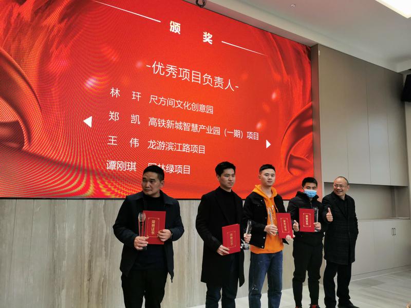 会议由行政部经理郑德凯主持,公司各版块、各部门、各项目部代表,优秀团队代表、优秀员工参与本次大会。会议第一项议程是对优秀团队和员工进行表彰颁奖,表彰大会设年度优秀员工、优秀管理者、优秀项目负责人、优秀项目部等多个荣誉奖项。由公司总经理张松涛和副总经理饶美霞为获奖人员和团队代表颁发荣誉。