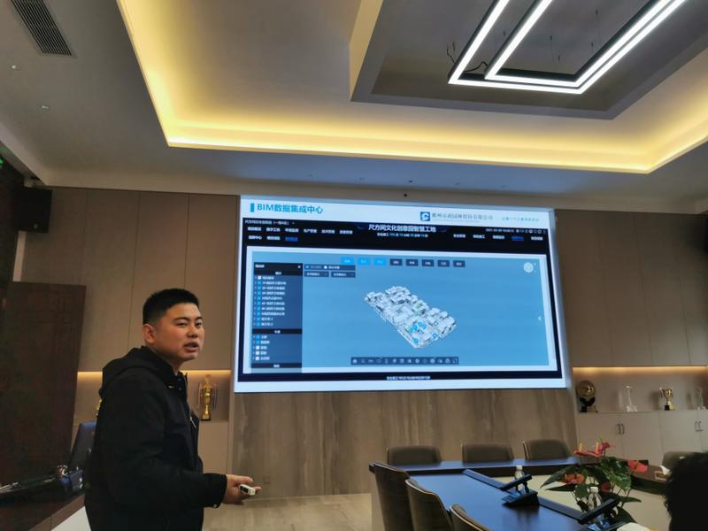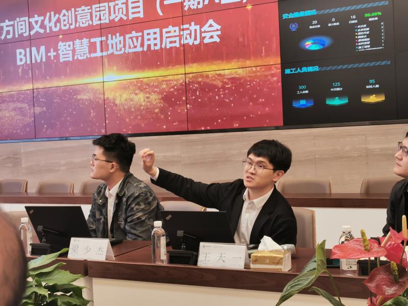 会上,尺方间项目负责人林玕对公司和项目的基本情况、建设目标进行了介绍。林玕结合项目实际,介绍并展示了目前项目上智慧工地的应用情况、建设思路、已实现的功能、预计达到的效果等情况。希望通过与广联达的合作,更加深度应用“BIM+智慧工地技术”,以达到绿色施工、数字化管理、安全生产的目标。