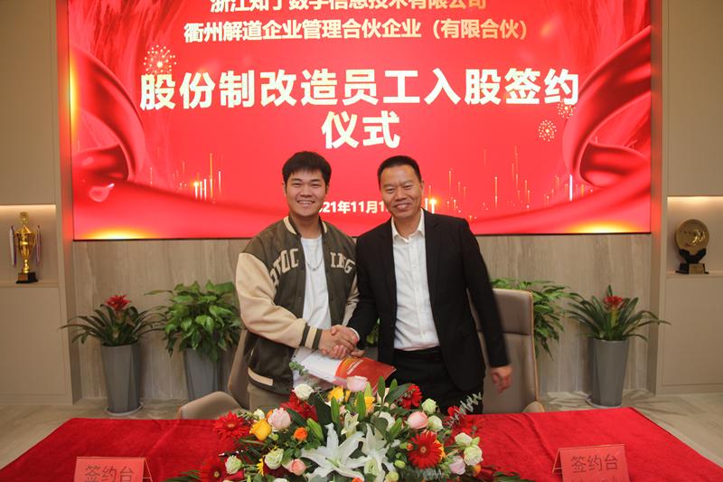 会议最后,郑董依次与各位员工股东签订了《员工入股合伙协议书》,至此此次签约仪式圆满落幕。