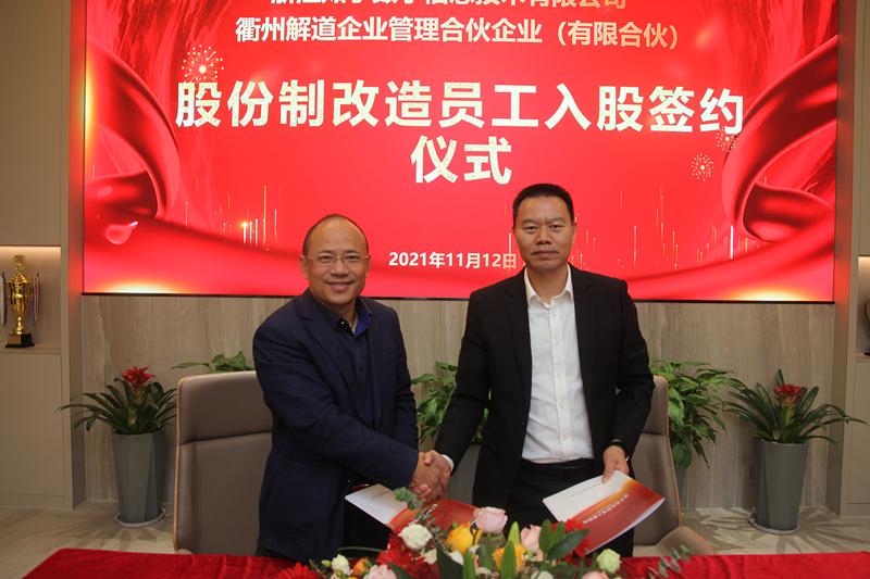 2021年11月12日下午,英国威廉希尔股份制改造员工入股签约仪式顺利举行,大会圆满成功。英国威廉希尔公司董事长郑荣忠,总经理张松涛,衢州市市政建设开发有限公司总经理龚时辉及众多入股股东参与此次签约仪式。