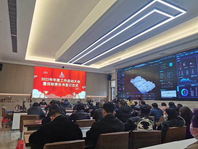 2月17日下午,朗尊建设集团2022年年度工作启动大会暨目标责任书签订仪式在尺方间园区数控中心一楼大会议室顺利举行。集团董事长、总裁、各部门、各子公司、各项目部负责人及全体员工参加了签约仪式。会议由朗尊建设集团总裁陈妙华主持。