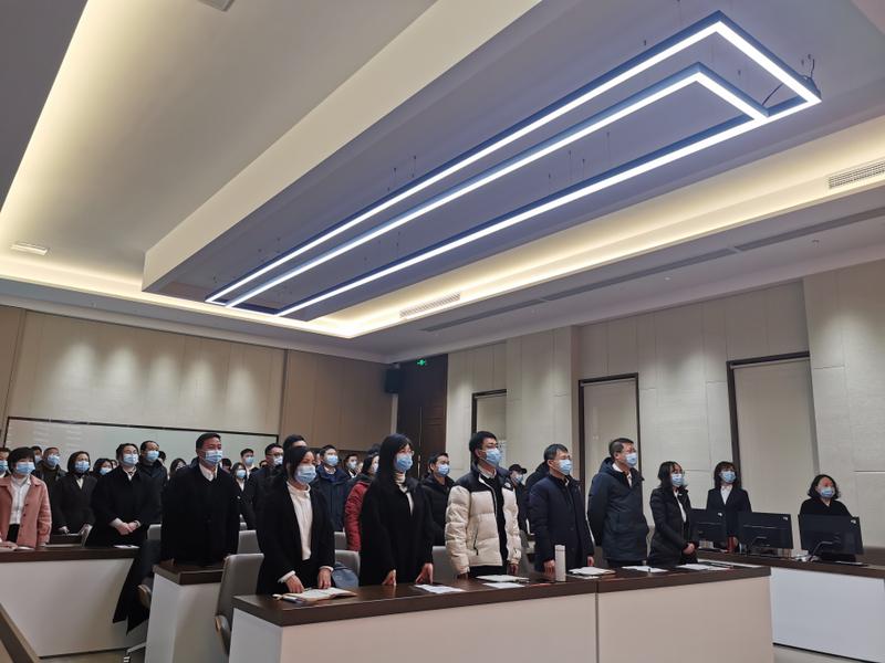 整个签约仪式简约又庄重,许多同事信心满满地喊出 “保证完成任务”“保证超额完成任务”等口号。仪式完成后,所有签约人在主持人的带领下宣誓,喊出“2022,一起向未来”的口号。