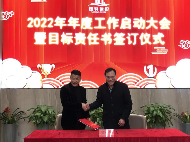 本次会议以“承诺目标,承诺合作。2022,一起向未来”为主题,安排部署朗尊建设集团各部门、各子公司及各项目部新一年的工作目标,并与相关负责人签订了目标责任书,标志着2022年度工作正式全面启动。