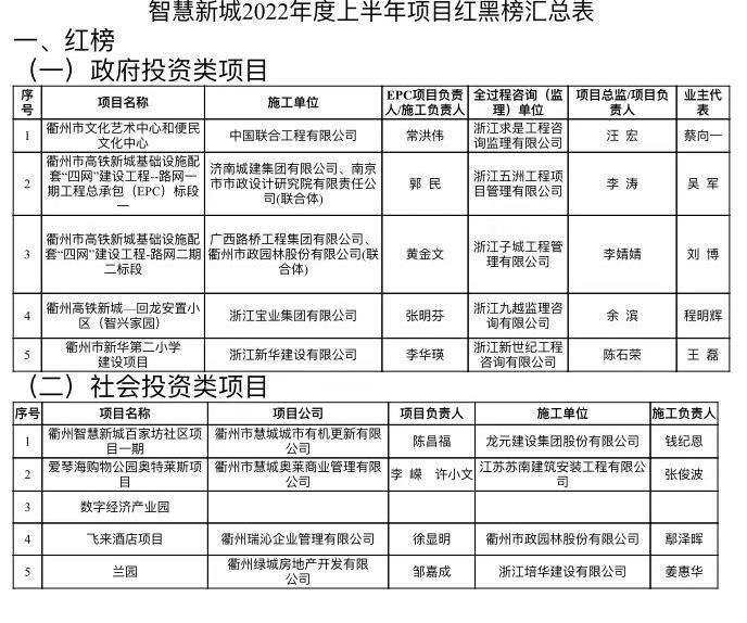 近日,在智慧新城上半年工作总结大会上,我司承建的衢州市政高铁城基础设施配套”四网建设工程--路网二期项目和飞来酒店项目因在2022年度上半年市本级重点项目推进“红黑榜”检查评比中获“红榜”受到表彰和奖励。