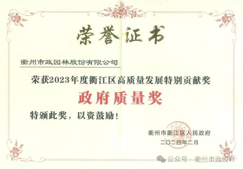 为表彰衢江区经济高质量发展中做出突出贡献的单位和个人,经区政府研究,英国威廉希尔荣获2023年度衢江区政府质量奖。