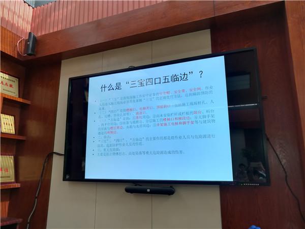 8月18日下午,公司对全体员工进行了安全生产知识培训,大力宣扬“安全第一,预防为主,综合治理”的安全方针。公司领导对培训工作非常重视,安全生产知识也纳入公司对员工考核的一部分。授课人认真编写了相关培训知识,主要讲解了“三宝”、“四口”、“五临边”的安全防护技术,作用是将作业人员与危险源进行隔离,起到防护作业人员的作用。